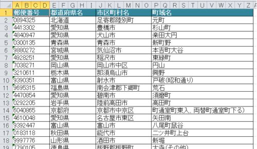 先日Excel方眼紙で作成された表を1データ1列の綺麗な表に変換するために、空白行を削除するというシチュエーションが発生した。以下は今回のマクロ紹介のために作成したダミー。全国の郵便番号データから無作為に100件選んだものである。 上記の表では列が結…